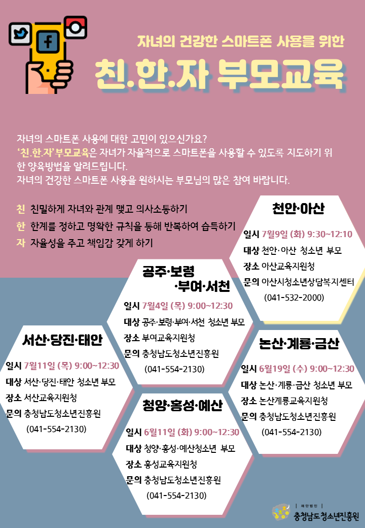2019년 자녀의 건강한 스마트폰 사용을 위한 '친.한.자 부모교육' 안내