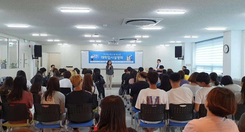 (재)충청남도청소년진흥원(원장 박영의) 청소년지원센터 꿈드림은 도내 학교밖 청소년들의 대학입시 정보에 대한 욕구를 충족시키고자 7월 9일(화) 「2019년 학교 밖 청소년 대학입시설명회」를 개최하였다.