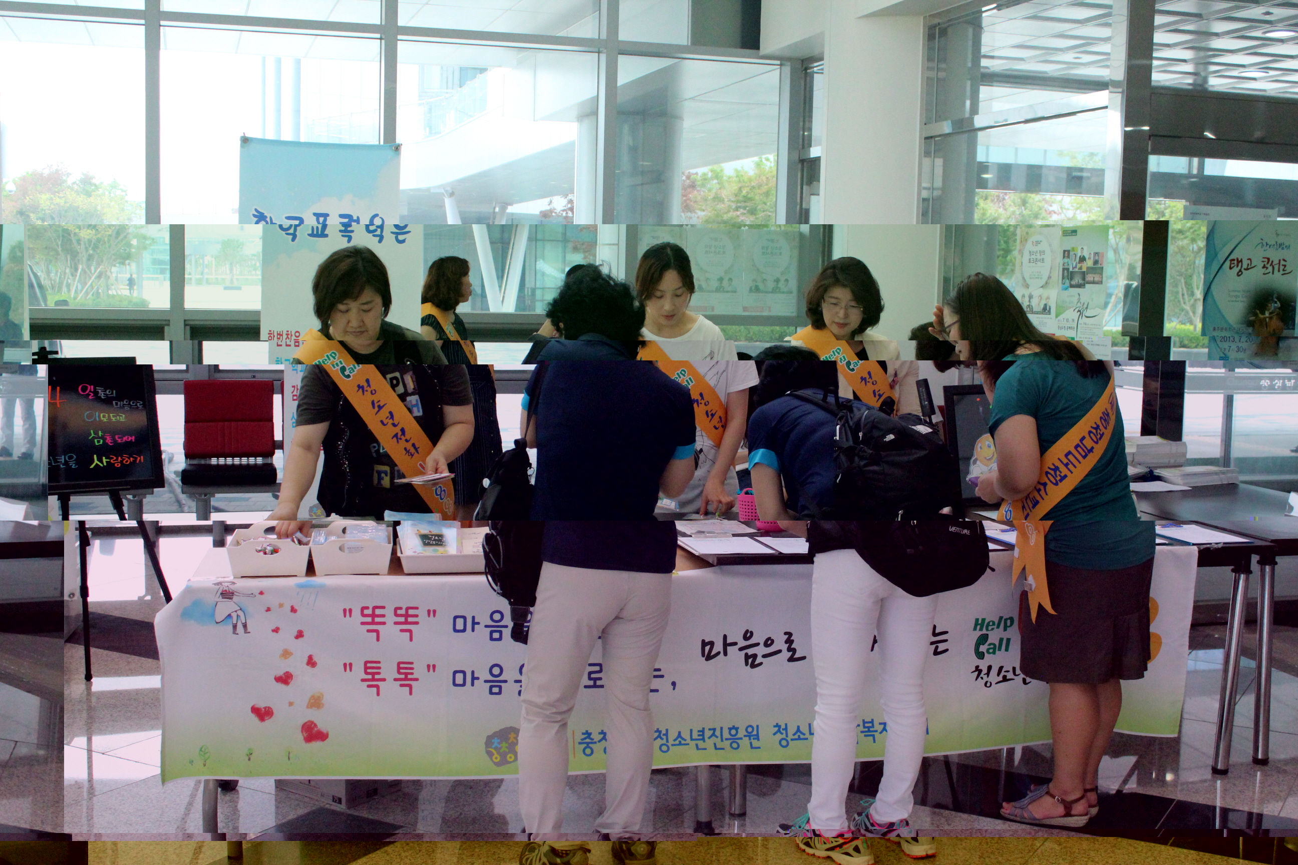 찾아가는 거리상담(제30회 충청남도 여성대회 4대악근절 캠페인 협동) 활동 2963 | 최고관리자 | 2013-10-14 * 일 시 : 2013년 7월 2일 * 장 소 : 도청 문예회관 1층 로비 * 활동내용 : "제30회 충청남도 여성대회 4대악근절 캠페인"과 협동하여 홍보활동, 1388청소년전화 및 위기사업 홍보, 상담부스 및 앙케이트 부스 운영