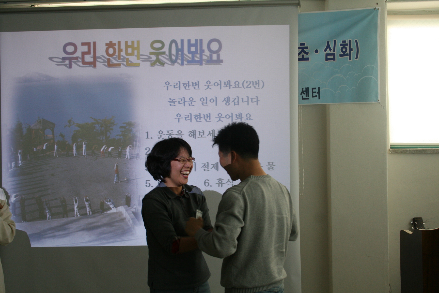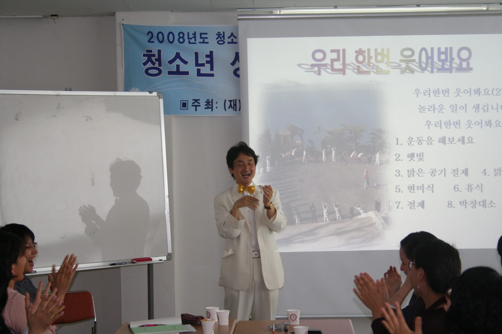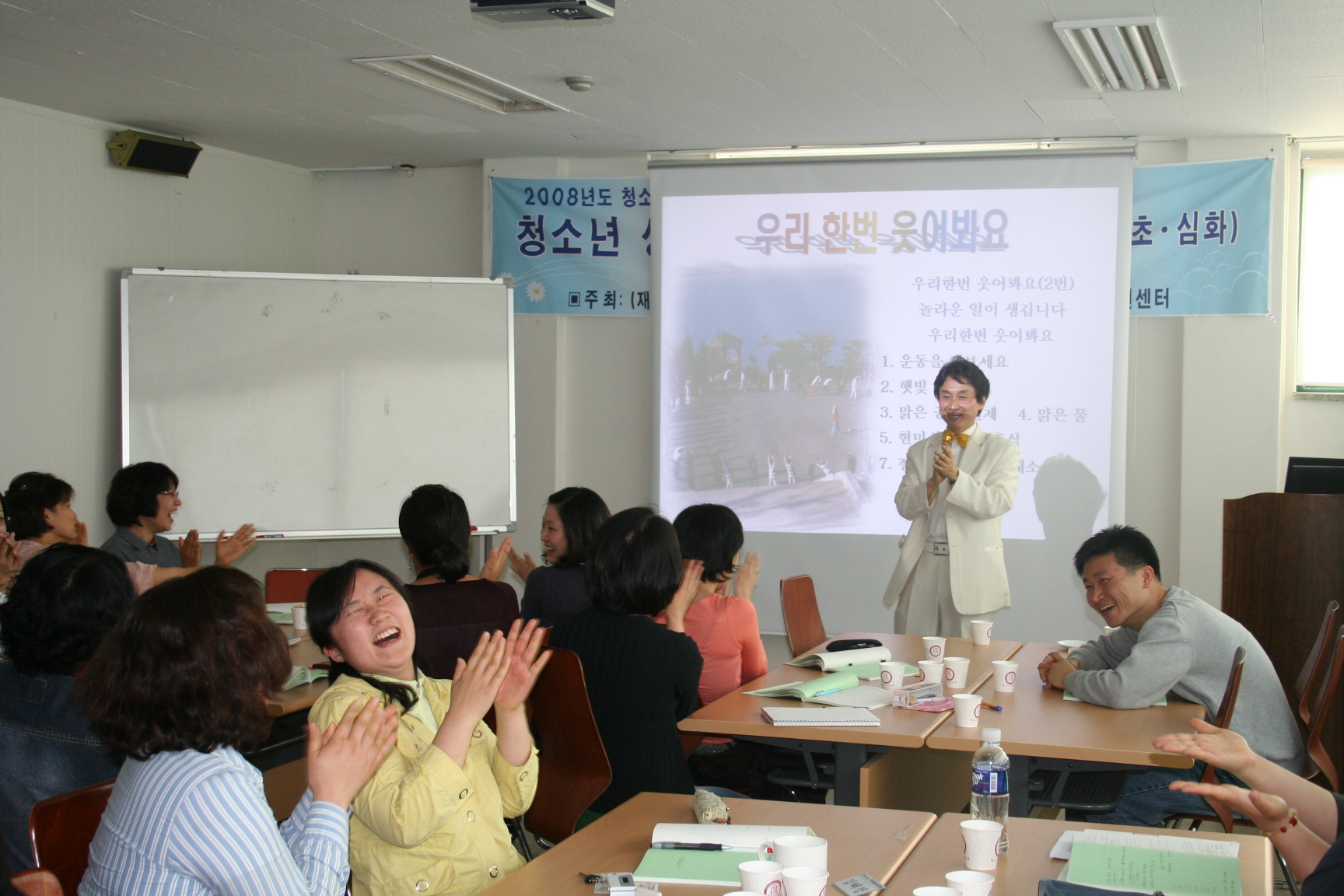 카운슬러대학 3130 | 최고관리자 | 2008-05-16 웃음치료 사진예요^^ 예비 카운슬러 선생님들의 밝게, 맑게 마음도 이쁘게 파안대소하는 모습~ 상담 공부 행복해요 2008년 5월 16일 상담지원실 손희란