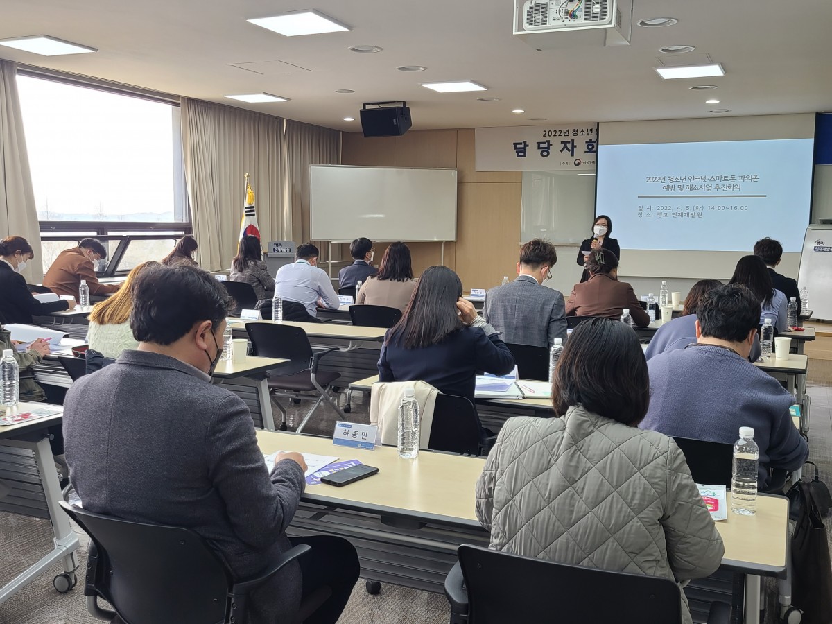 2022년 청소년 인터넷·스마트폰 과의존 예방 및 해소사업 담당자회의 및 추진회의 1347 | 상담홍보담당자 | 2022-05-06 충청남도 청소년들의 건강한 인터넷·스마트폰 이용습관을 위해 교육청·교육지원청 장학사님들과 도, 시·군 청소년상담복지센터 선생님들이 모였습니다. 여성가족부와 교육부 협력으로 진행되는 인터넷·스마트폰 이용습관진단조사 후 청소년들에게 치유서비스를 제공하기 위한 방안과, 발전하는 미디어 시대에 청소년들에게 필요한 서비스는 무엇인지에 대한 내용을 공유하는 시간을 가졌습니다. 2022년에도 인터넷·스마트폰 이용으로 어려움을 겪고 있는 청소년들이 더 나은 생활을 할 수 있도록 힘쓰는 선생님들과 장학사님들에게 힘찬 응원 부탁드립니다!
