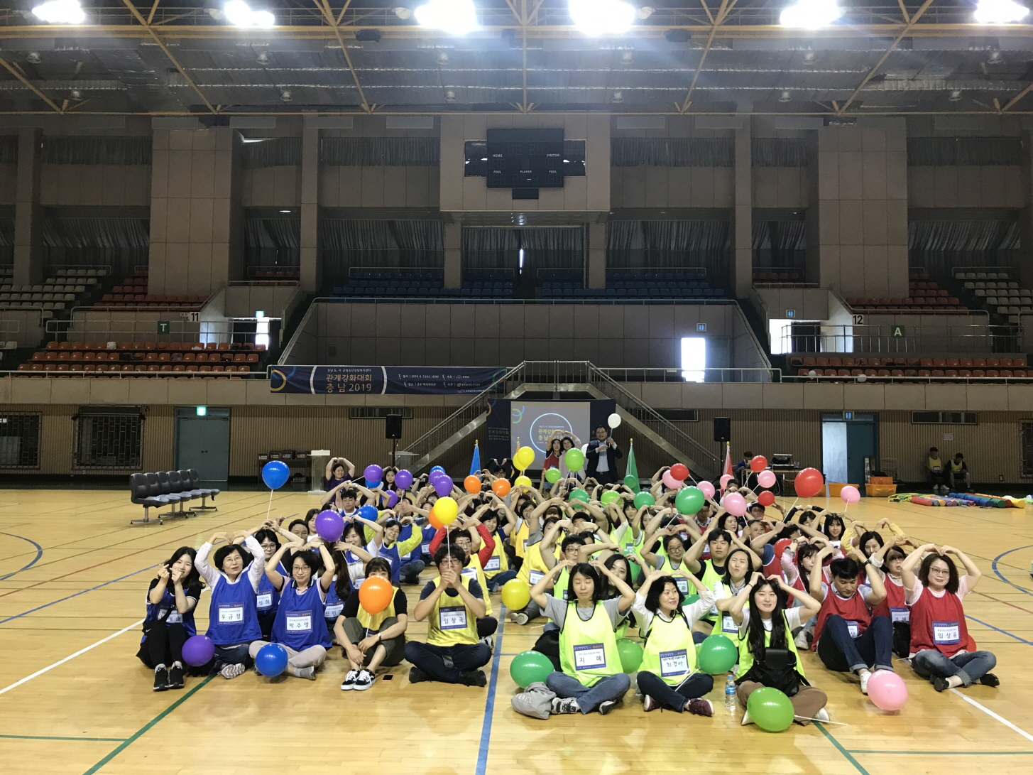 2019년 충남 도, 시·군청소년상담복지센터관계강화대회 1389 | 최고관리자 | 2019-11-11 - 일정: 2019. 6. 5.(수) - 장소: 공주 백제체육관 - 내용: 전략 줄다리기, 낙하산 달리기, 신발 과녁 게임, 계주 등 참가자 전원이 참여 가능한 종목 등의 활동으로 관계강화
