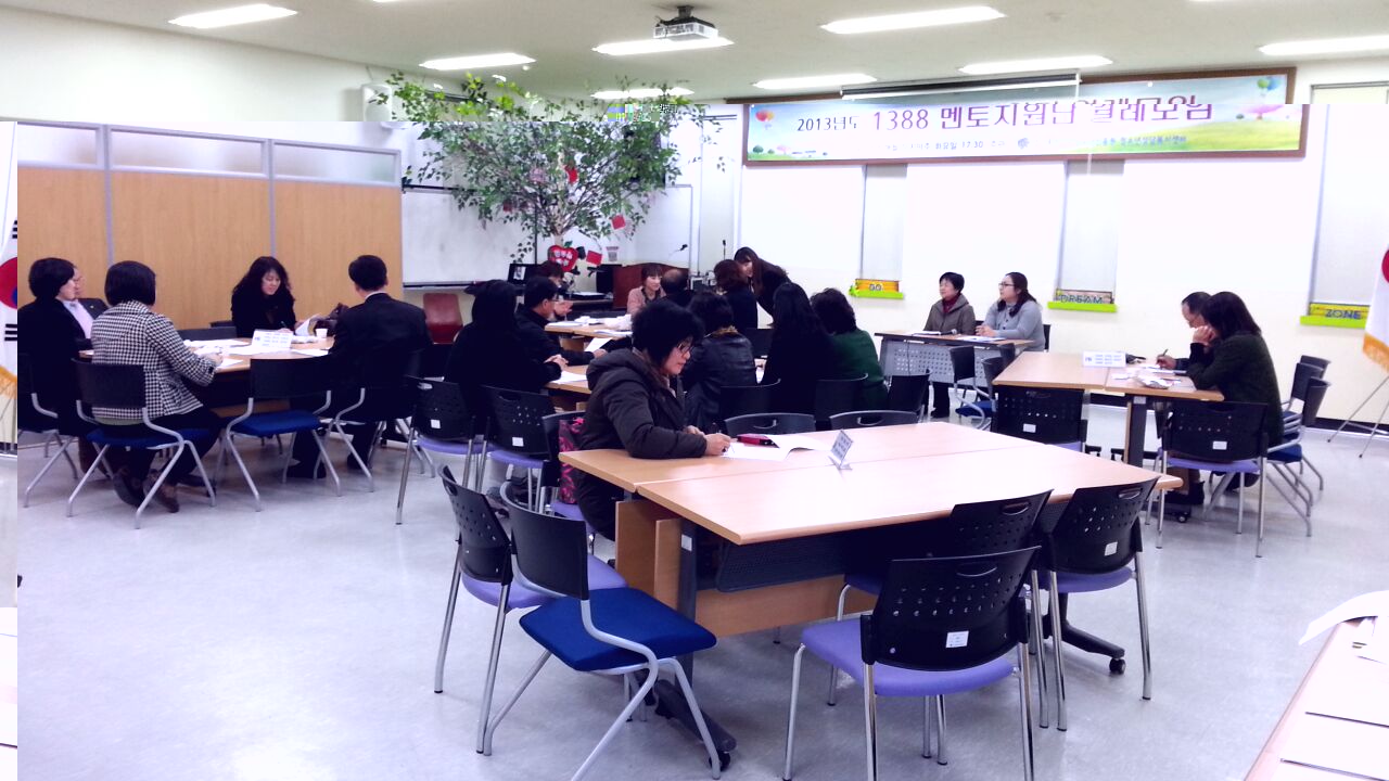 1388 전문직 멘토지원단 3월 월례모임 2794 | 최고관리자 | 2013-10-10 * 일시: 2013년 3월 26일 * 장소: 본원 3층 교육장 * 내용: 상담복지센터 4월 사업일정 안내, 안건별 회의, 팀별 모임 진행 3월 26일 1388 전문직 멘토지원단 회의가 저녁에 진행되었습니다. 안건별 회의 및 팀별 모임을 통해 청소년들에게 좀 더 실질적 도움이 되고자 열띤 이야기를 나누었습니다. 참석해주신 멘토선생님들께 감사드립니다.