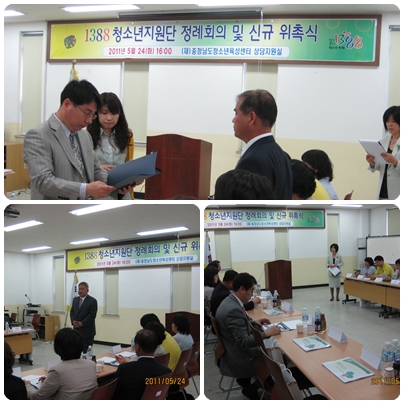 1388청소년지원단 정례회의 및 신규지원단 위촉식 2914 | 최고관리자 | 2011-07-15 1388청소년지원단 정례회의 및 신규지원단 위촉식일시 : 2011년 5월 24일(화) 16:00장소 : 본센터 교육장 참석대상자: 1388청소년지원단 30명신규위촉대상자 : 30명