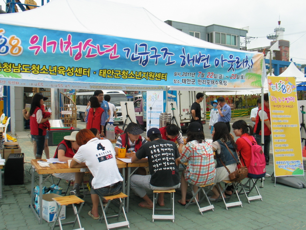 2011년 해변아웃리치 활동 3093 | 최고관리자 | 2011-07-25 장소 : 태안군 만리포해수욕장일시 : 2011년 7월 22일(금)-23(토)활동내용 : 해변 및 해안가 주변 상가 아웃리치, 캠페인, 이동상담소 운영