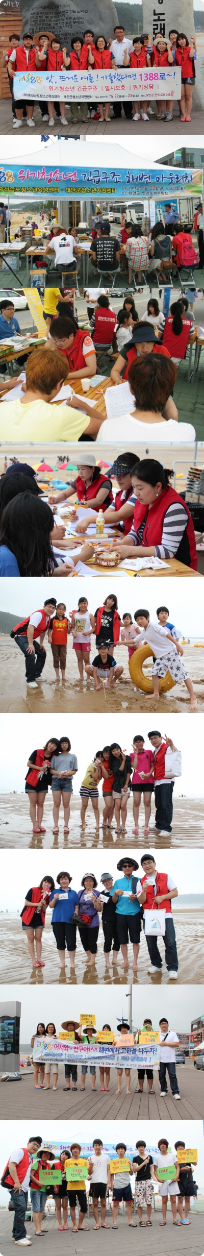 태안 만리포 해변 아웃리치 3065 | 최고관리자 | 2011-08-05 < 태안 만리포 긴급구조 해변 아웃리치 > * 일자: 2011년 7월 22일(금) - 23일(토) * 장소: 태안 만리포 해수욕장 * 내용: - 이동상담소 운영(상담 및 심리검사) - 가출 청소년 긴급구조 활동 및 1388청소년 전화 안내 (주변 인근 상가 및 관광객) - 해변 가출청소년 구호활동(의약품 및 긴급용품 지원)