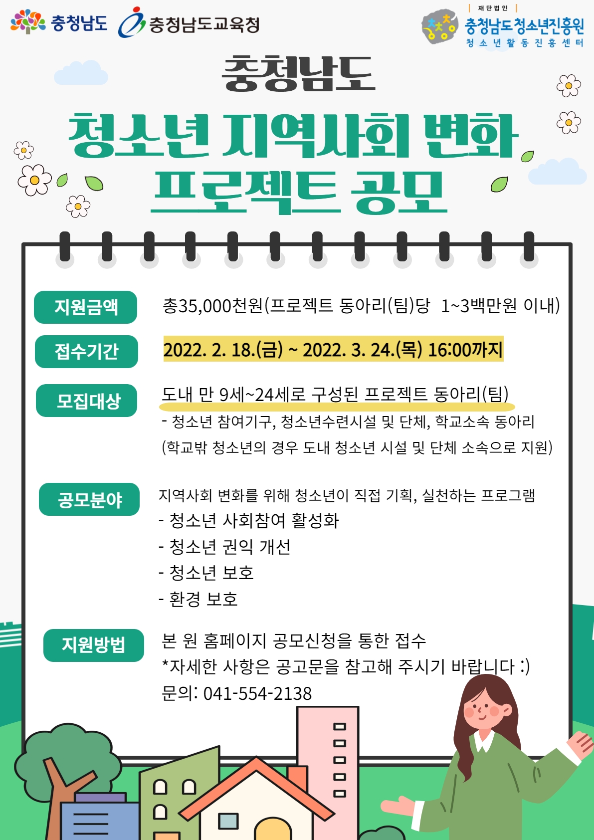 청소년들이 직접 기획, 실천하고 지역사회 변화를 위한 청소년 여러분의 창의적인 활동을 공모하오니