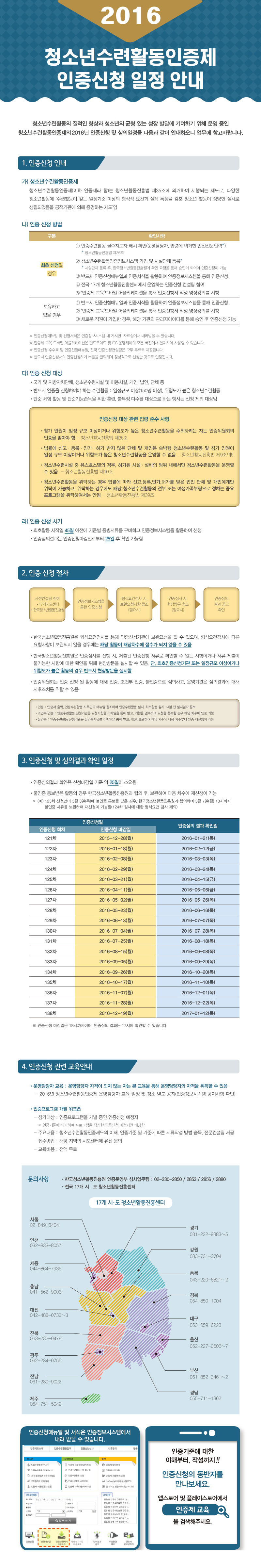2016년 청소년수련활동인증제 인증신청 일정 안내