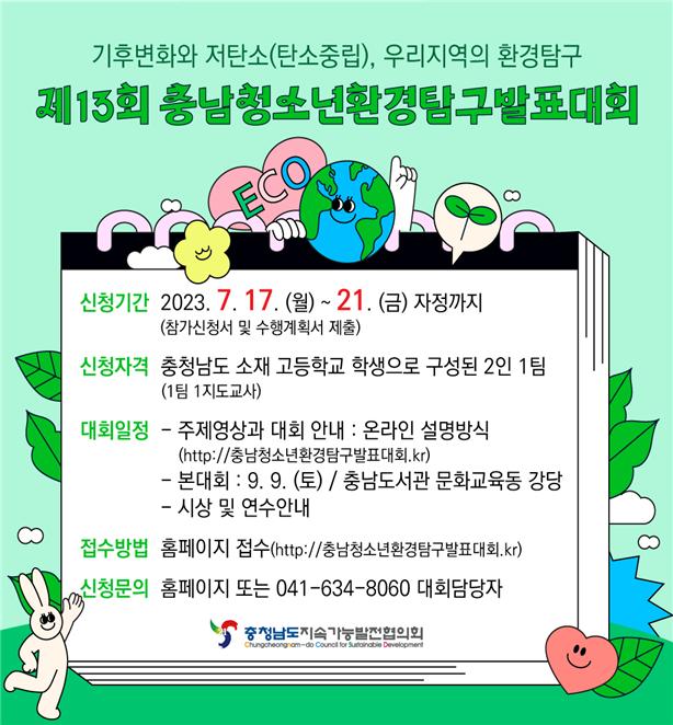 [모집] 제13회 충남청소년환경탐구발표대회 개최 안내