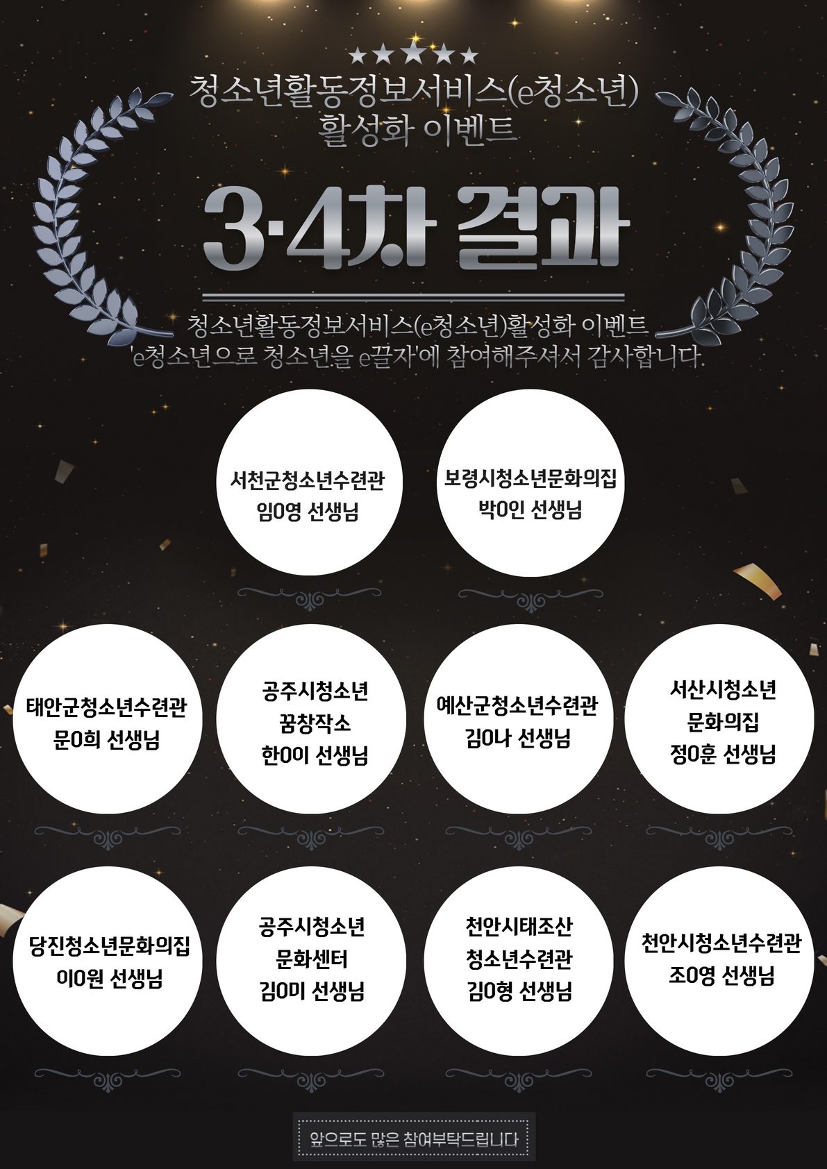 [안내]청소년활동정보제공서비스(e청소년) 3,4차 이벤트 선정자 발표 안내