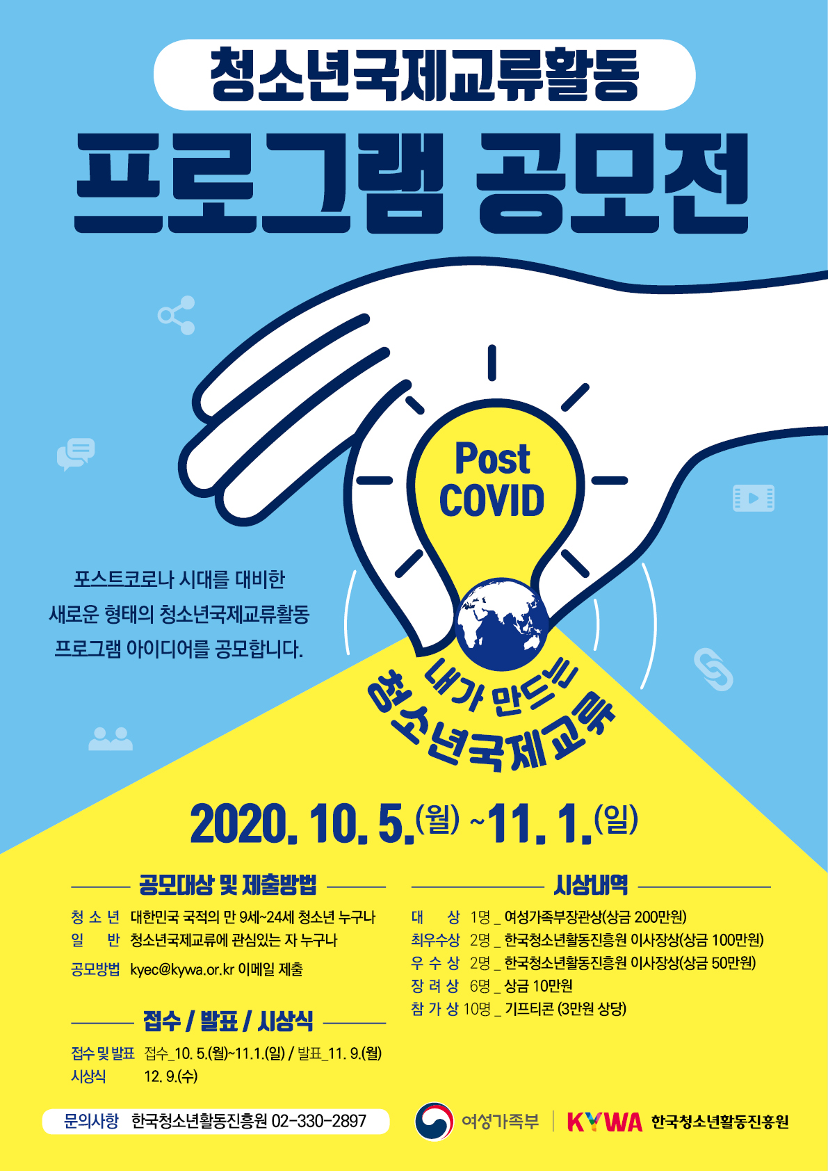 - 프로그램 : 청소년 / 일반 분야, 포스트코로나시대 "내가 만든 국제교류" 주제 프로그램 공모