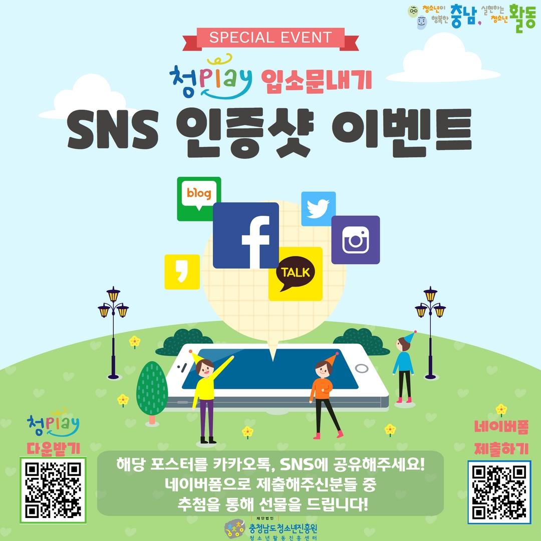 그 중 첫 번째! 청PLAY를 전국민적으로 널리 널리 알리고자 입소문 내기 이벤트를 실시하고자 합니다.