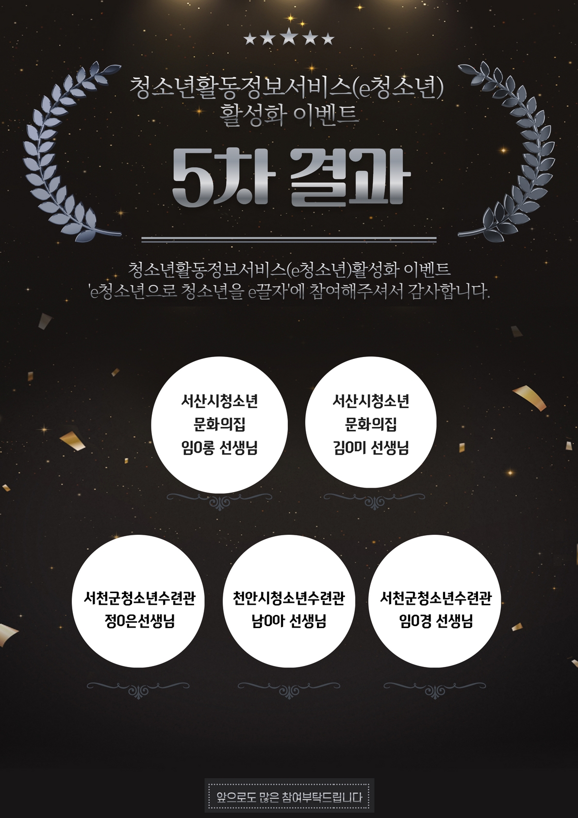 청소년활동정보서비스(e청소년) 활성화 이벤트 5차 선정자 발표