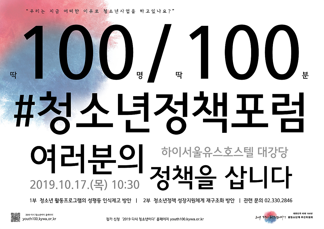 (정보안내) 「2019 다시 청소년이다」 청소년정책포럼 개최 안내