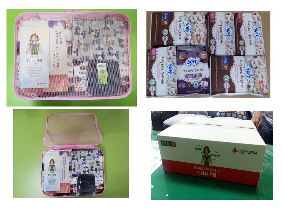 ○ 지원물품: 위생용품 세트(유기농 생리대 3개월분, 위생팬티, 파우치, 교육용 리플렛)