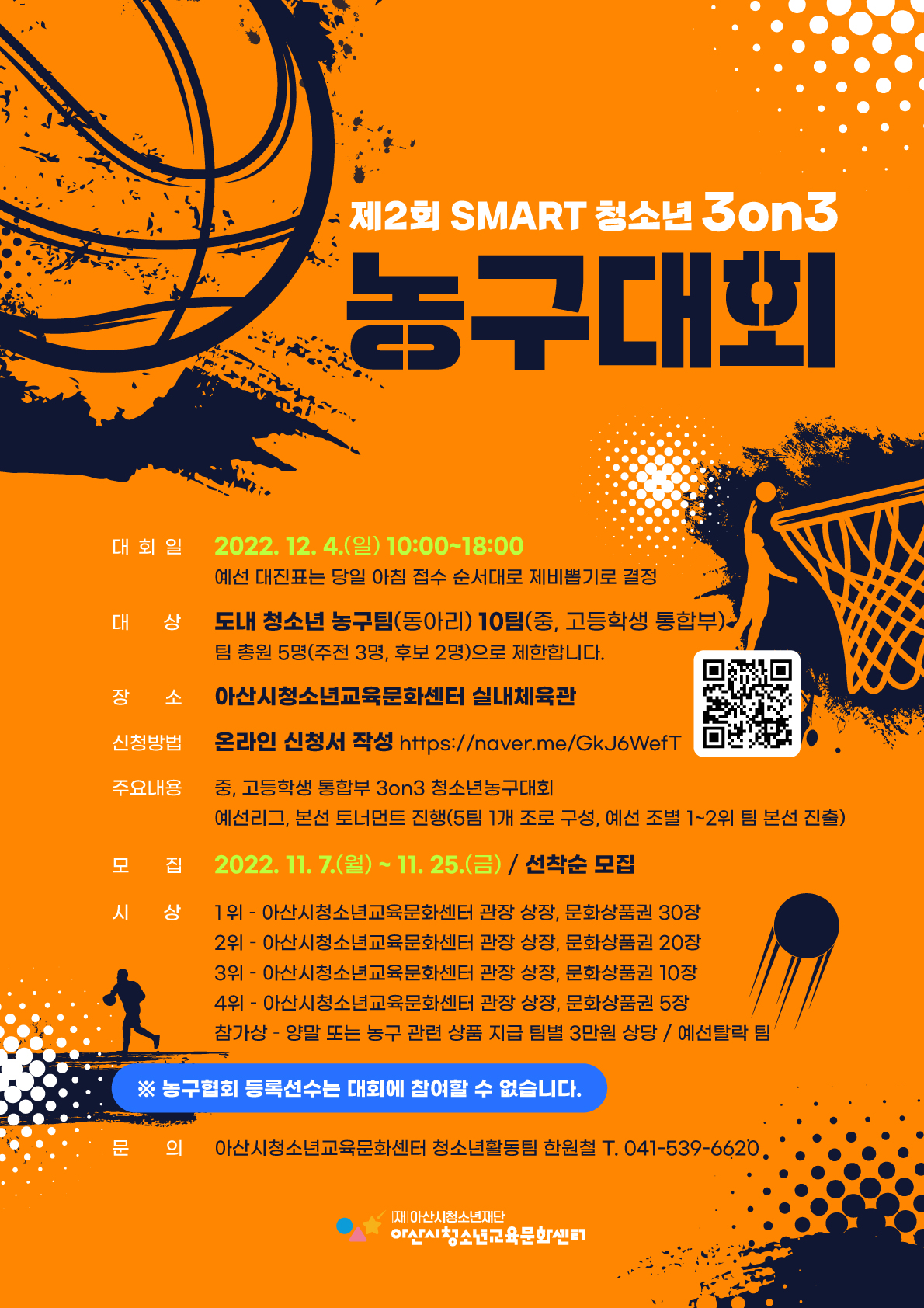 [아산시청소년교육문화센터] 제2회 SMART 청소년 3on3 농구대회