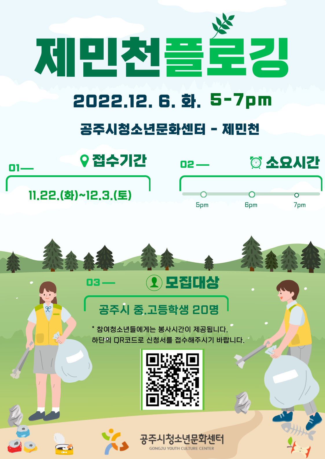 - 청소년들이 살고 있는 지역의 제민천 산책길을 걸으며 환경정화를 할 수 있다.