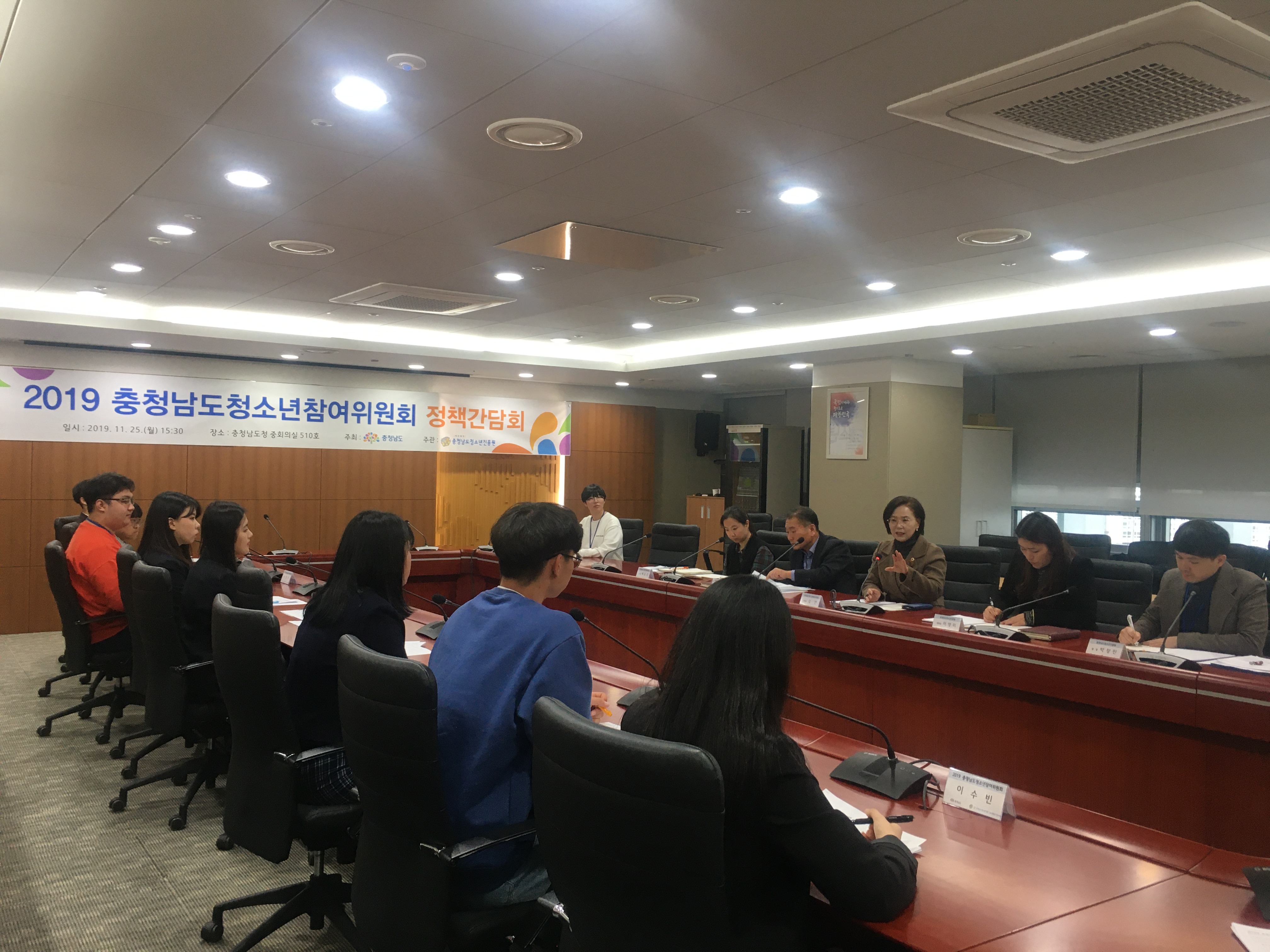 충청남도가 주최하고 재단법인 충청남도청소년진흥원(원장 박영의) 활동진흥센터가 주관하는 「충청남도청소년참여위원회 정책간담회」가 11월 25일(월) 충청남도청 중회의실에서 진행되었다.