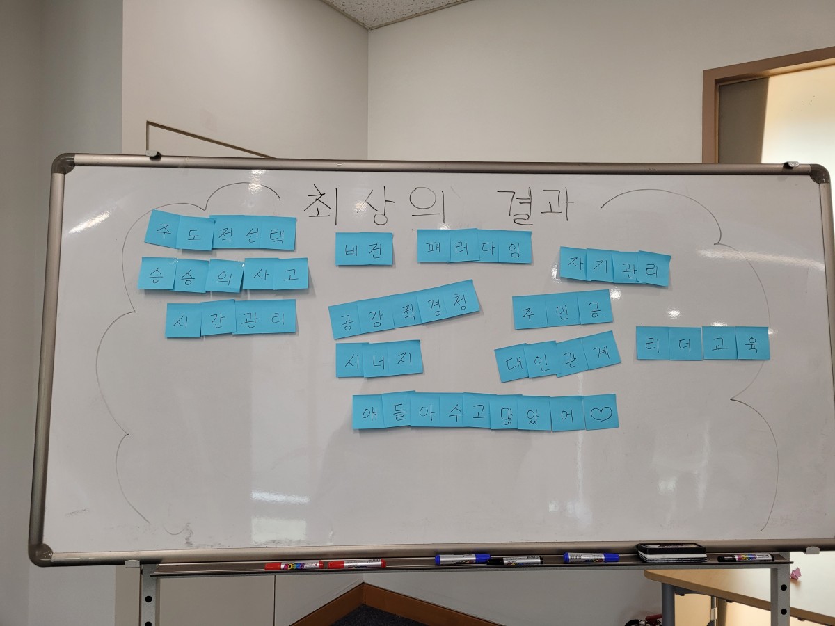 충청남도 청소년 리더 양성 프로젝트 주.인.공. 리더교육(천안) 1741 | 활동진흥센터 | 2023-06-18 충청남도 청소년 리더 양성 프로젝트 주.인.공. 리더교육 (천안)기간: 2023. 6. 17.(토)~2023. 6. 18.(일)장소: 천안 재능교육연수원내용: 6대역량(공동체의식, 주도성, 자기이해, 문재해결, 목표설정, 의사소통)을 기반으로 한 리더십 역량 강화