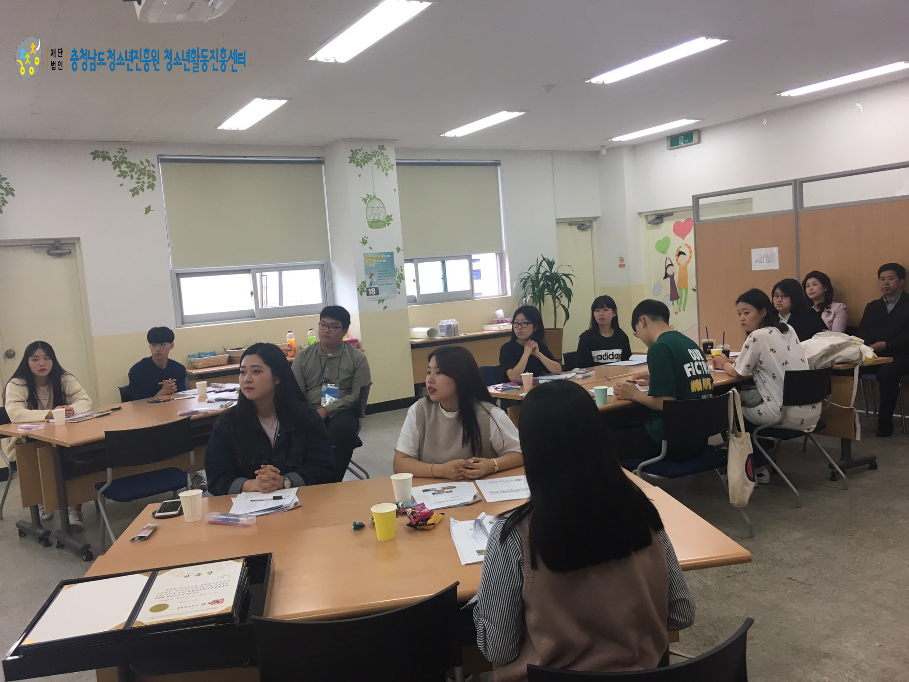 ■ 행 사 명 : 충청남도청소년참여예산위원회 위촉식 및 다.만.세. 지역사회 변화 프로젝트 선정 심사 ■ 일 시 : 2017. 5. 13.(토) 10:30 ~ 18:30 ■ 장 소 : 본원 3층 교육장 ■ 대 상 : 총20명(충청남도청소년예산위원회 11명, 자문위원 5명, 본원 4명) ■ 주요내용 : 예산 이해 교육 및 충청남도청소년참여예산위원회위촉식, 다.만.세. 지역사회 변화 프로젝트 선정 심사 ■ 주 최 : 충청남도, 충청남도교육청 ■ 주 관 : 재)충청남도청소년진흥원 활동진흥센터