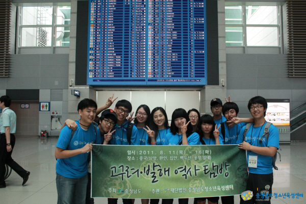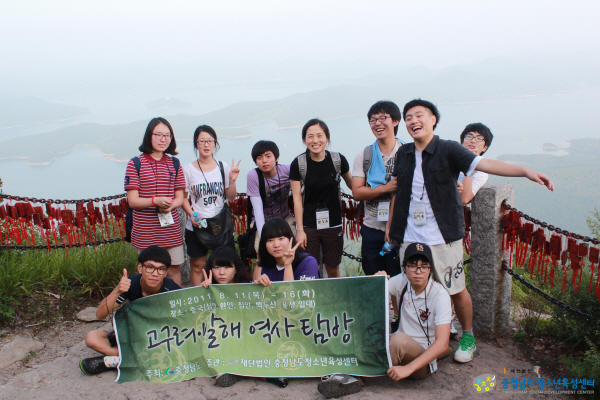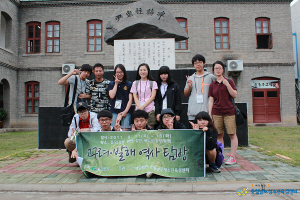 (재)충청남도청소년육성센터(이사장 구본충 道 행정부지사) 활동지원실에서는 지난 8월 11일(목) 부터 16일(화)까지 5박 6일 일정으로, 도내 청소년 10명과 지도자 1명이 환인, 집안, 용정 등 중국에 산재돼 있는 옛 고구려 ․ 발해의 문화유적지를 탐방하고 돌아왔습니다.