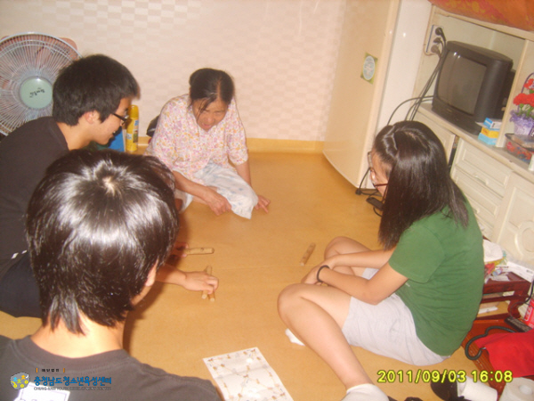 청소년활동우수프로그램지원사업 '나래' 4353 | 최고관리자 | 2011-09-14 9월 3일에 있었던 청소년활동 우수프로그램 지원사업 '나래'의 활동 사진입니다. 이번활동은 여가지원활동으로 사전에 우리나라의 전통놀이를 배우고 독거노인과 함께 윷놀이하고, 명절선물을 전달하는 프로그램으로 진행되었습니다. 활동을 통해 청소년들이 자신이 도움을 주고 즐겁게 해드릴수 있다는것에대해 자부심을 느끼고, 어르신들의 정을 많이 느끼고 있습니다.