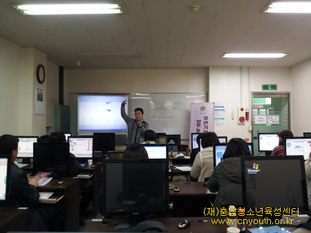 청소년유관기관 실무장역량강화연수(2차) 5067 | 최고관리자 | 2012-01-31 지난 12월 16일(금)천안IT교육문화센터에서도내 유관기관실무자 14분과 함께실무에 필요한 프레지교육을 실시하였습니다.앞으로 청소년들을 위한 다양한 교육에 활용할 수 있기를 바랍니다. ^^