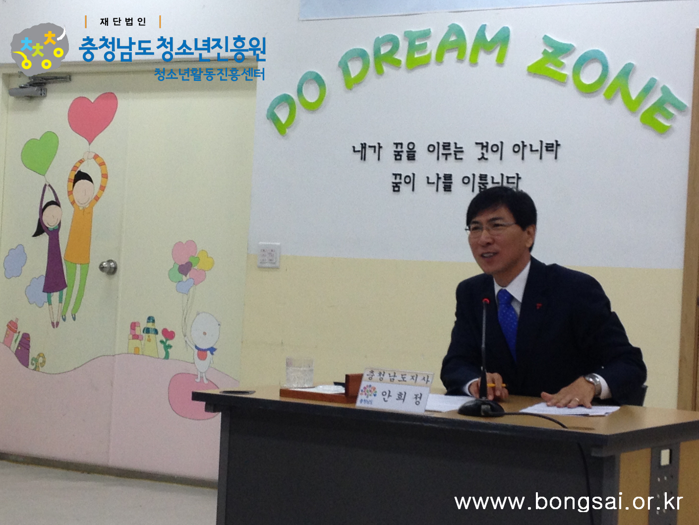 안희정 충남도지사, 충청남도청소년진흥원 방문 4673 | 최고관리자 | 2012-11-15 오늘(2012.11.15) 오전 안희정 충남도지사님께서 충청남도청소년진흥원을 방문해주셨습니다. 직원들과의 대화를 통해 현장의 목소리에 귀 기울여 주신 멋진 도지사님♥ 앞으로도 도민, 특히 청소년들의 이야기에 많은 관심 부탁드립니다.