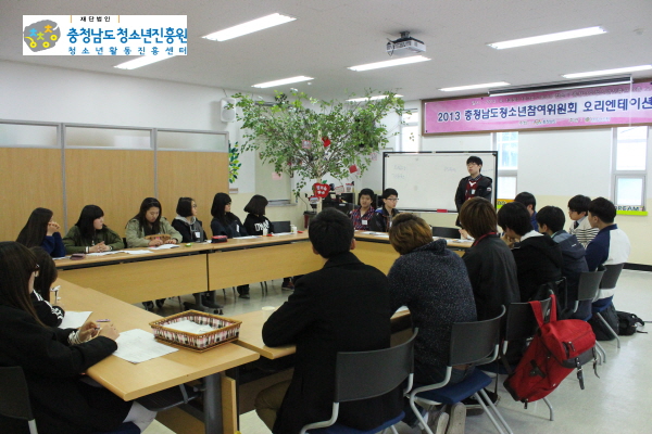 2013 청소년참여위원회 오리엔테이션 및 1차회의 4683 | 최고관리자 | 2013-04-16 2013. 4. 13(토) 충청남도청소년참여위원회 23명 위원들의 첫모임이 있었습니다.첫만남의 서먹함을 없애기 위한 아이스브레이킹 활동과 청소년참여위원회의 의장 및 임원 선출, 의제설정등 충남청소년참여위원회로써의 첫 발을 내딛는 소중한 시간이 되었습니다.충청남도청소년참여위원회 화이팅
