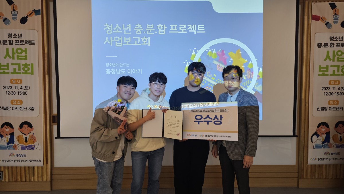 충청남도 청소년 기자단 전시회 . 평가회의 및 충.분.함 프로젝트 사업보고회 2111 | 활동진흥센터 | 2023-11-06 충청남도 청소년 기자단 전시회 . 평가회의 및 충.분.함 프로젝트 사업보고회 일 시: 2023. 11. 4.(토) 10:30~16:00장 소: 천안 신불당아트센터