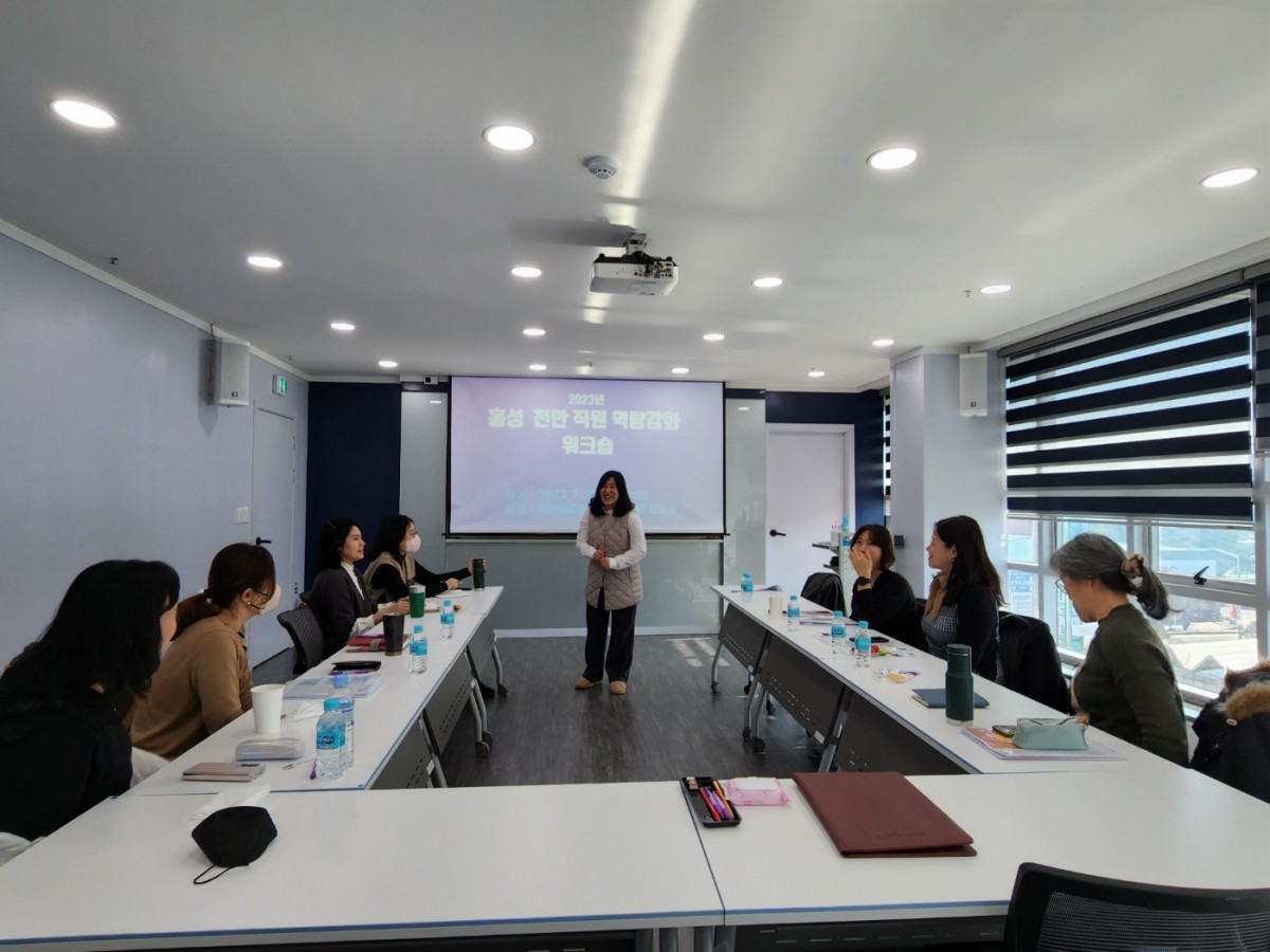 홍성. 천안 연합 직원 역량강화('23.02.20/27) 1532 | 홍성성문화센터 | 2023-03-07 홍성. 천안 연합 직원 역량강화('23.02.20/27)외부강사 초청교육 및 상담복지센터장 슈퍼바이저 매뉴얼 개발 및 교육 시연회를 가졌으며 두 센터의 직원 친목 도모함