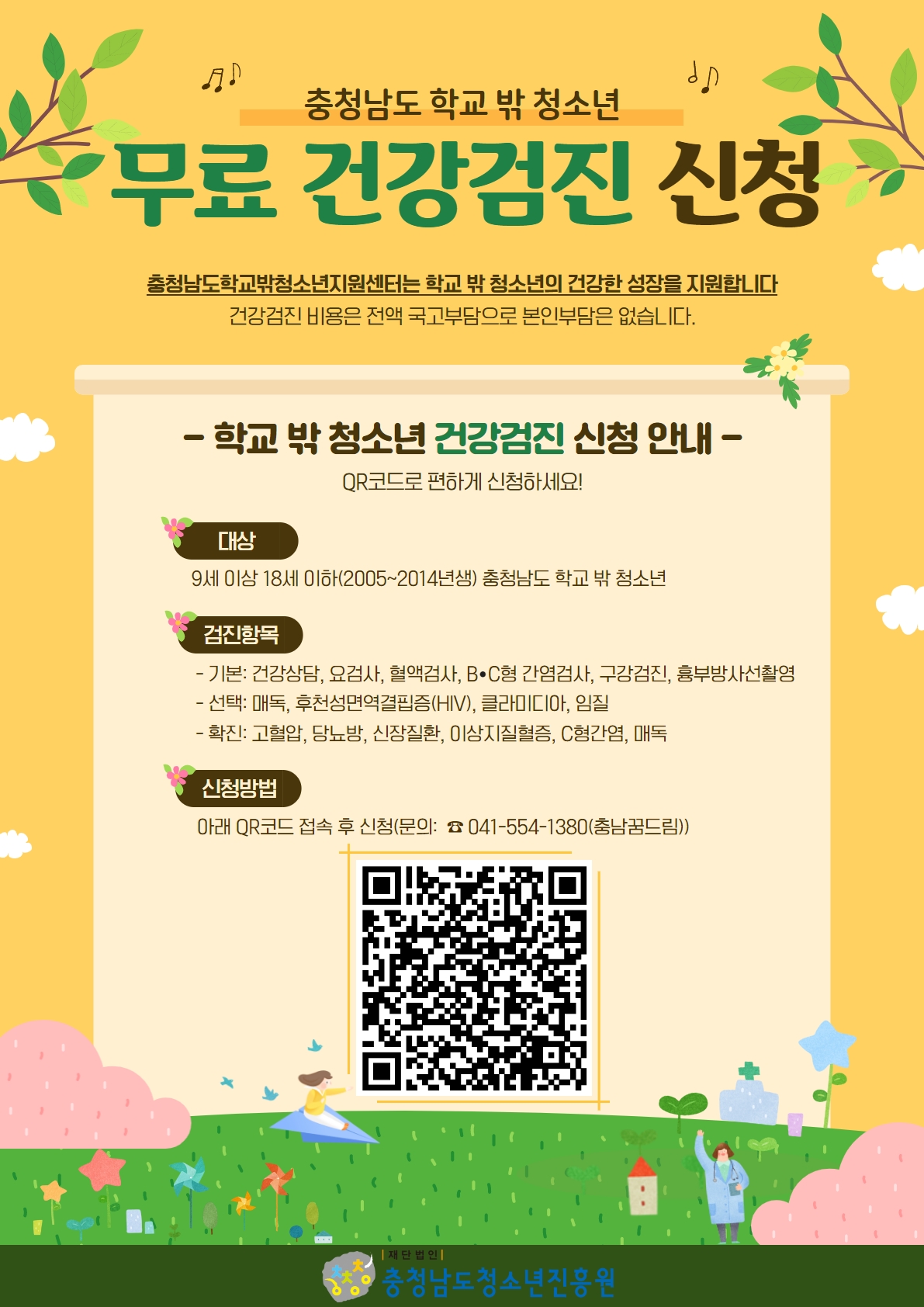 2023년 충청남도 학교 밖 청소년 무료 건강검진 신청 안내