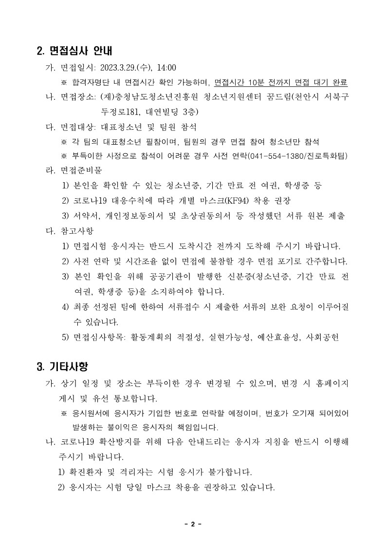 2023년 자기주도형 프로젝트 서류 심사결과 및 면접심사 안내