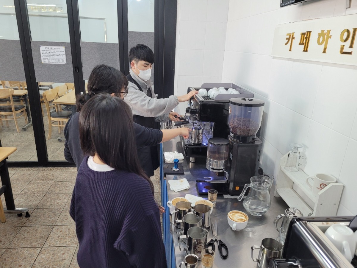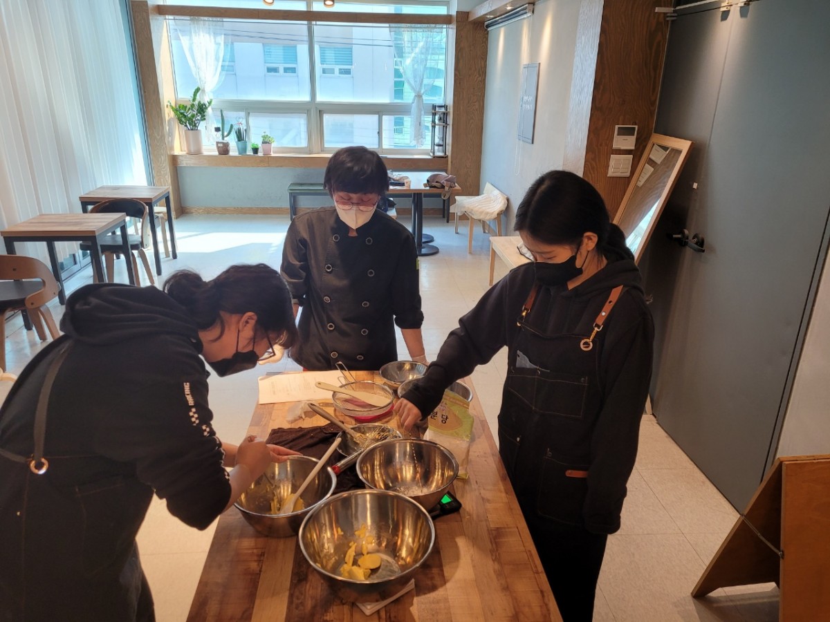 2022 인큐베이팅카페 퐁당 7기 오픈 준비 1531 | 꿈드림센터 | 2022-03-16 인큐베이팅 카페 퐁당 7기 오픈 준비!!카페 운영을 위한 바리스타교육, 제과제빵교육, 근로권익교육이 진행되고 있습니다.#코로나19 감염 방지를 위해 열체크, 마스크 착용, 손소독 등 방역지침을 준수하였으며, 최소인원으로 분리 운영하였습니다.