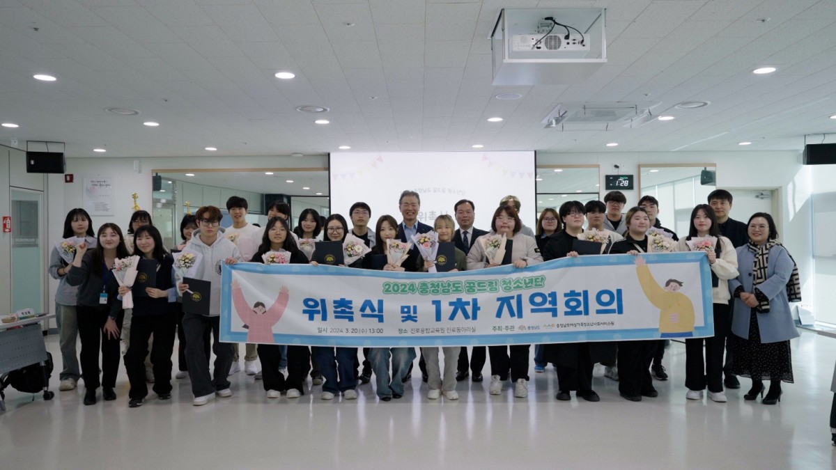 충청남도진로융합교육원에서 '2024년 충청남도 꿈드림 청소년단 위촉식'을 개최하였습니다. 이날 위촉식은 청소년 23명에게 충청남도지사 명의의 위촉장을 이종규 여성가족정책관님이 수여해주시고, 임원진 선발 및 연간 활동 방향 논의 등의 시간을 가졌습니다.