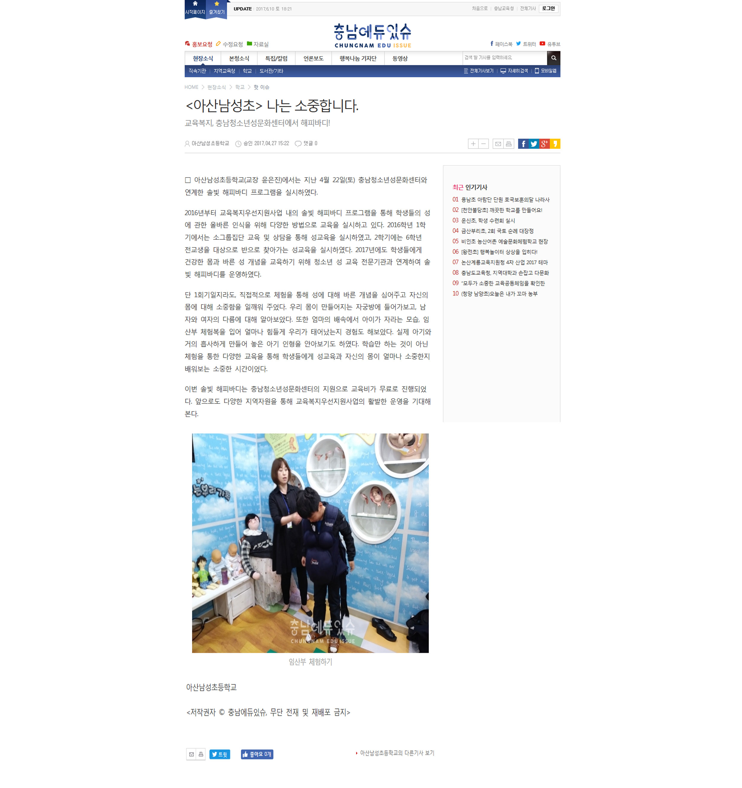 2017.4.27 아산남성초등학교 체험관성교육 실시