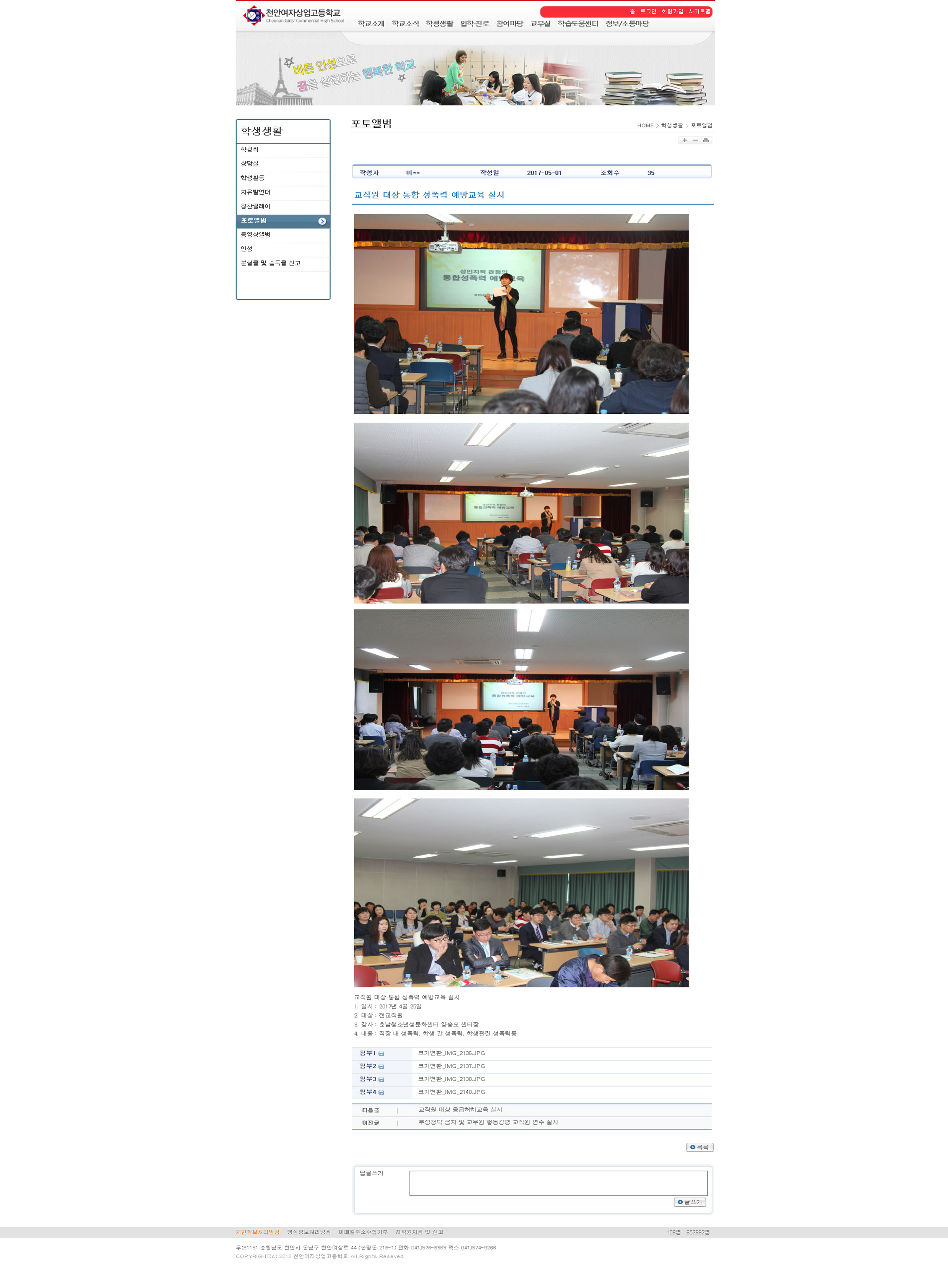 2017.5.1 천안여자상업고등학교 교직원 대상 성폭력예방교육실시