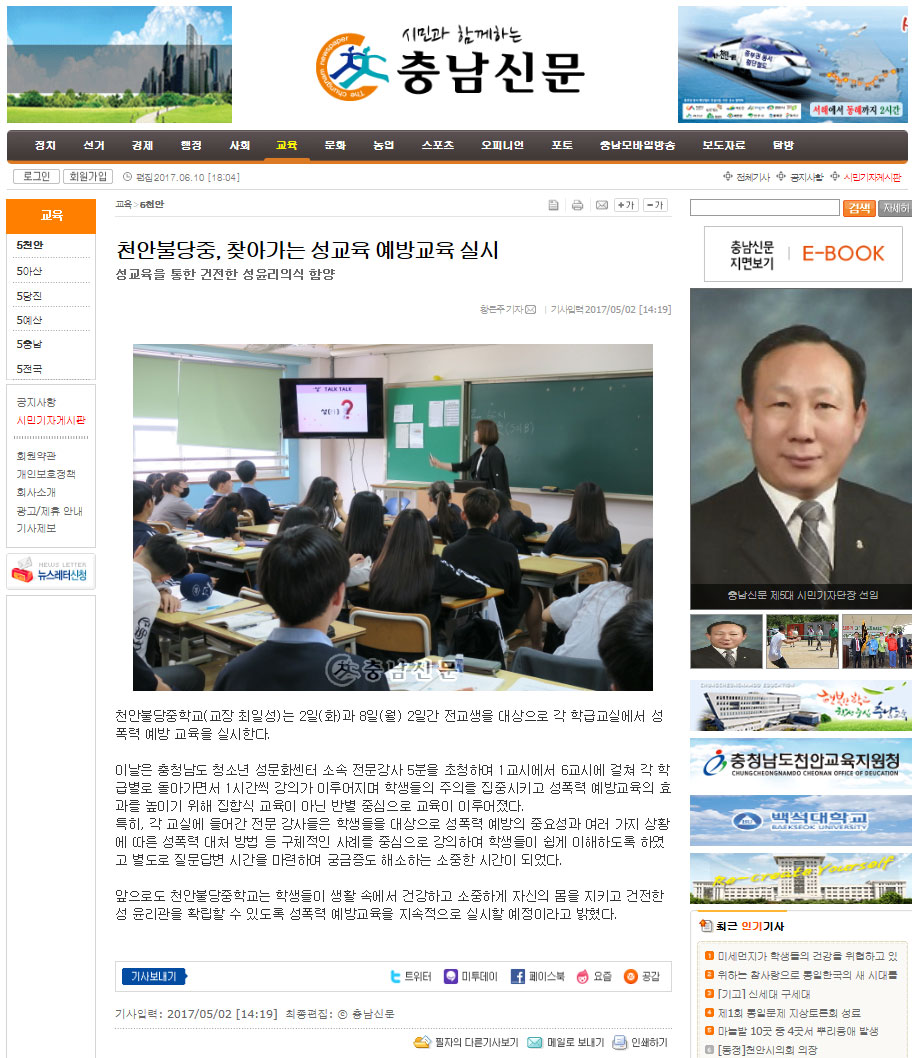 2017.5.2 천안불당중학교 성폭력예방교육실시