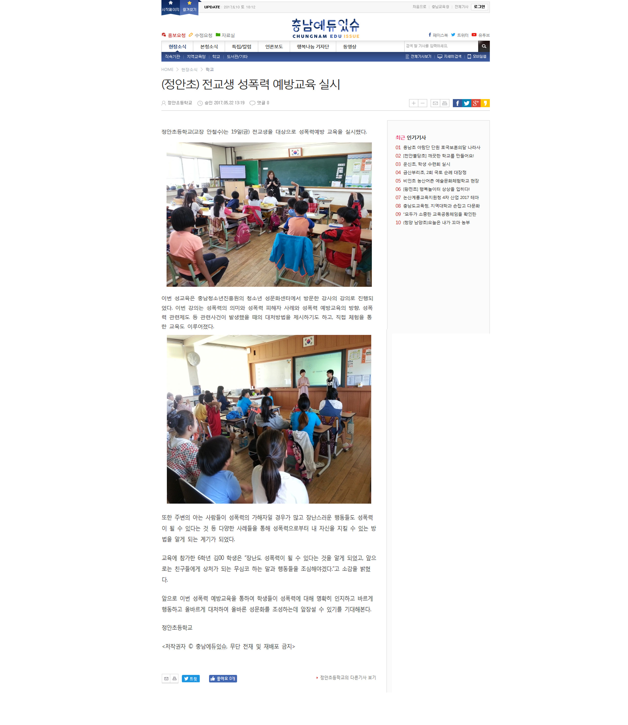 2017.5.22 공주정안초등학교 성폭력예방교육실시