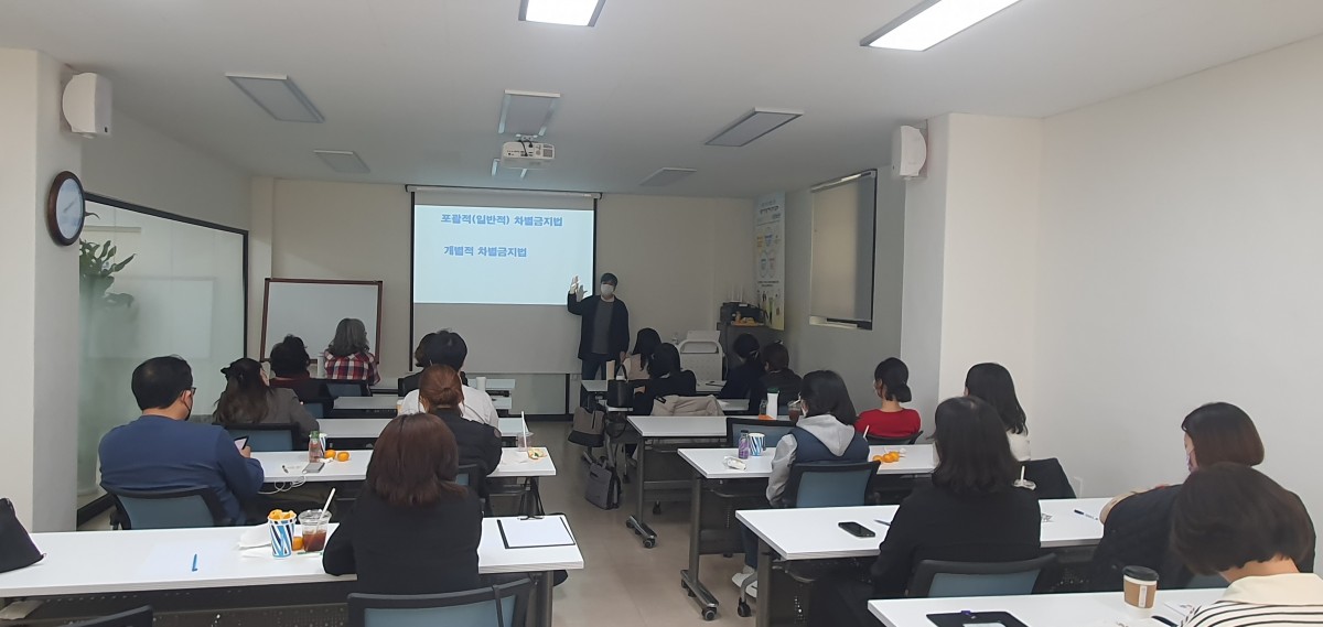 성문화센터 충정.대전 권역 직원 워크숍 2116 | 천안성문화센터 | 2022-11-09 11월9일 충청.대전권역 성문화센터직원 워크숍을 천안성문화센터에서개최하였습니다. 성문화센터 현안 문제 토의 및 공유, 각 센터 소개 및 인사, 센터 간 사업공유로 화기애애한 시간을 가졌습니다.호후에는 한 채윤강사님의 “청소년 젠더폭력예방, 차별금지법”에 대한 내용으로 매우 깊이 있고 의미 있는 강의를 들었습니다.청소년의 인권과 권리, 성 평등을 교육하는 성문화센터 종사자들에게 반드시 필요한 매우 유익한 교육이었습니다.