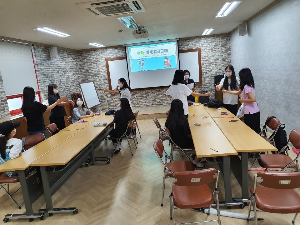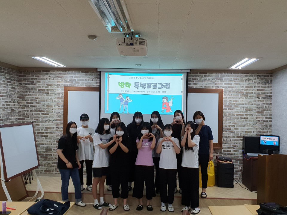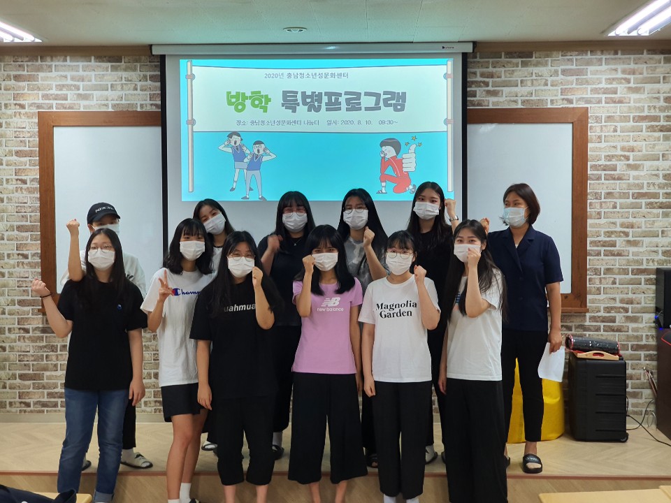 2020 방학 특별프로그램(8월10일) 2176 | 최고관리자 | 2020-08-11 2020 방학 특별프로그램(8월10일) 서로를 존중하는 수평적 연애를 주재로 프로그램참여 및 봉사활동 진행.