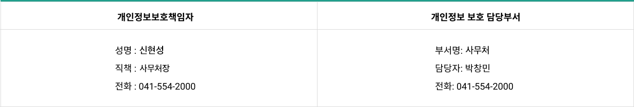 충청남도청소년진흥원은 고객의 개인정보를 보호하고 개인정보와 관련한 불만을 처리하기 위하여 아래와 같이 관련 부서 및 개인정보관리책임자를 지정하고 있습니다.