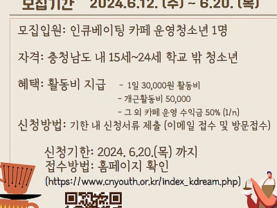 [모집] 2025년 충청남도학교밖청소년지원센터 인큐베이팅 카페 상반기(13기) 운영 청소년 모집 안내