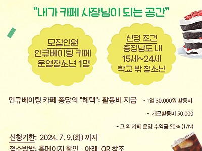 [마감] 2024년 학교 밖 청소년 인큐베이팅카페 하반기 운영 청소년 추가모집 안내