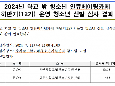 2024년 학교 밖 청소년 인큐베이팅카페 하반기(12기) 운영 청소년 모집 선발 결과 발표
