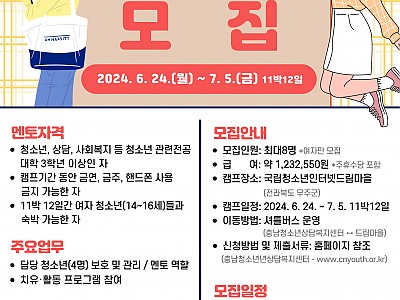 [마감]2024년 인터넷·스마트폰 치유캠프 여자 멘토 모집