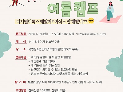 [마감]2024년 인터넷·스마트폰 치유캠프 참가 신청(여자캠프)