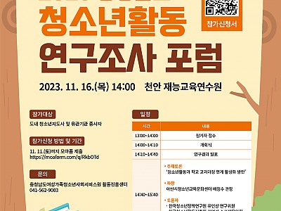 2023 충청남도 청소년활동 연구조사 포럼 참가 안내